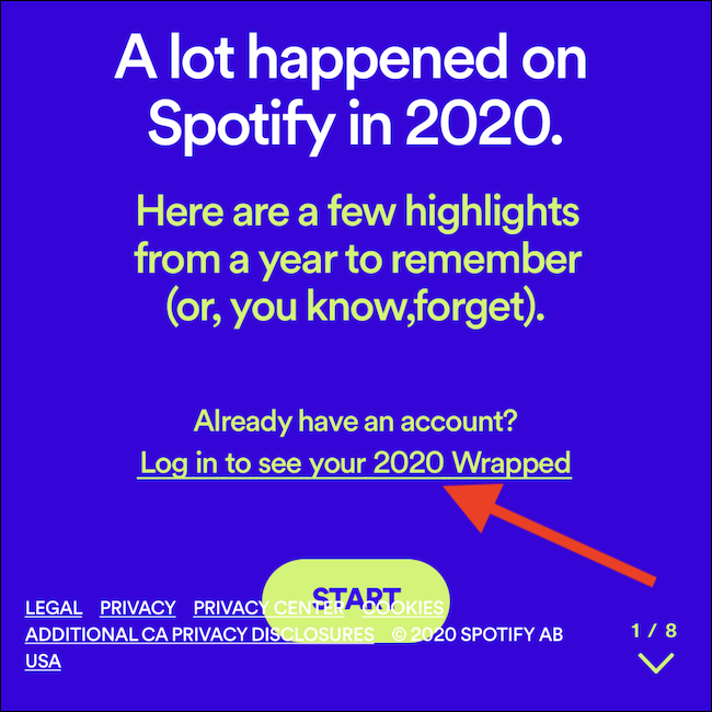From the browser, tap the “Log in to see your 2020 Wrapped” link.