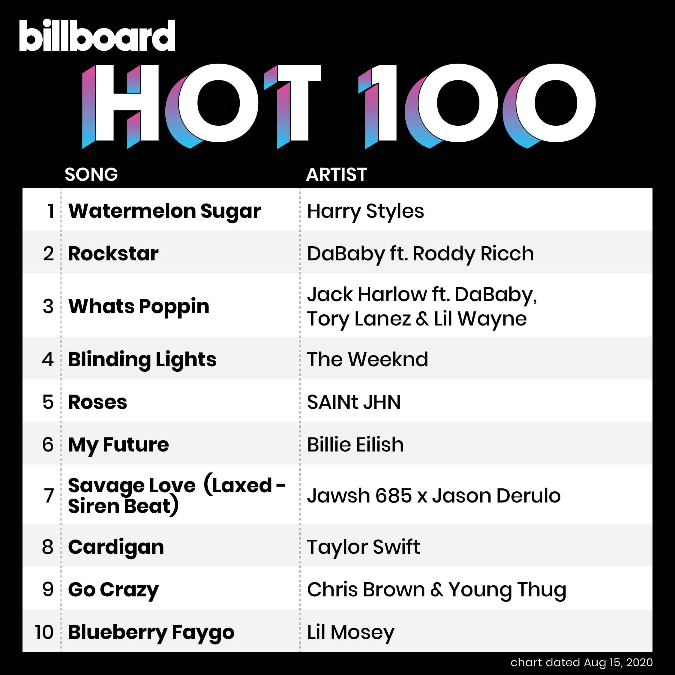 On August 11, 2020, Billboard Hot 100 released their Top 10 for the week, making Harry Styles dethrone Taylor Swift’s ‘Cardigan’ on the number 1 spot with his song ‘Watermelon Sugar,’ which surged from No. 7. This is the second time a One Direction member achieved number one on Hot 100 next to Zayn Malik with his song ‘Pillowtalk’ on February 2016.