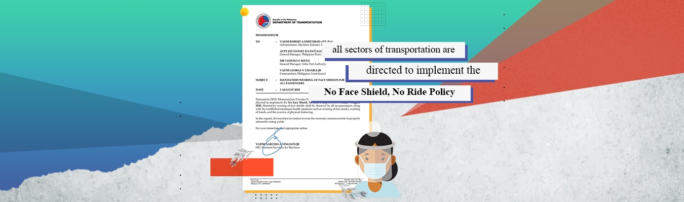 On August 3, the Department of Transportation has issued a memorandum requiring "all passengers in areas where public transportation is allowed" to wear face shields aside from face masks effective on August 15.