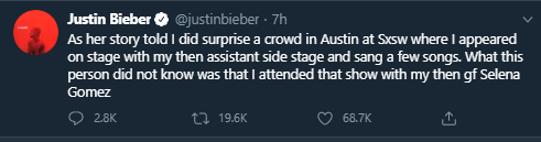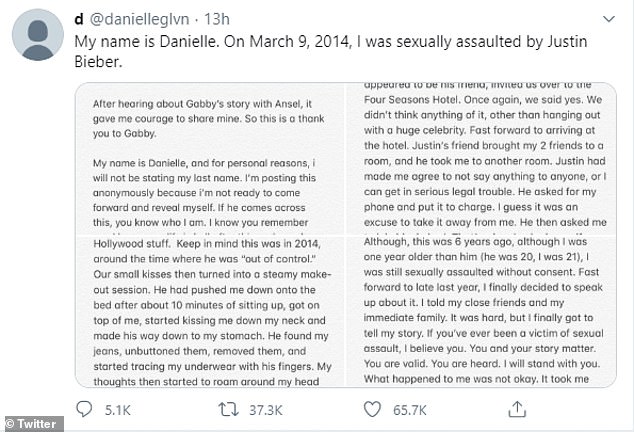 The Canadian singer defended himself and took to Twitter with a series of statements denying the allegation and posted evidence proving that he was not at the location that Danielle claimed he was at.