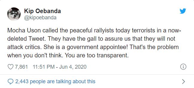 Uson’s now-deleted the tweet that pertained to the various youth groups picketed at the University of the Philippines Diliman last June 4.