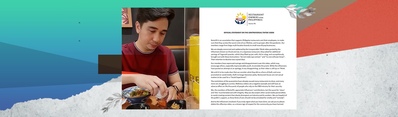 Two TikTok influencers have been criticized by members of the local restaurant community who call themselves Restaurant Owners of the Philippines (RestoPH) over their viral TikTok prank, which also receives backlash from the online users.