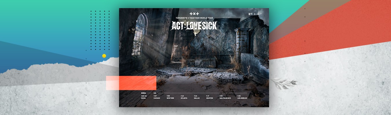 Chicago is the first of the TXT schedule on July 7th, New York on July 9th, with Atlanta, Dallas, Houston, and San Francisco closing the US dates, and lastly July 23rd in Los Angeles. “ACT: LOVESICK” serves as the first official tour of TXT to the United States, but prior to that the group, two months after its debut in 2019, did six sold out shows in New York, Chicago, Atlanta, Dallas, Orlando, and Los Angeles.