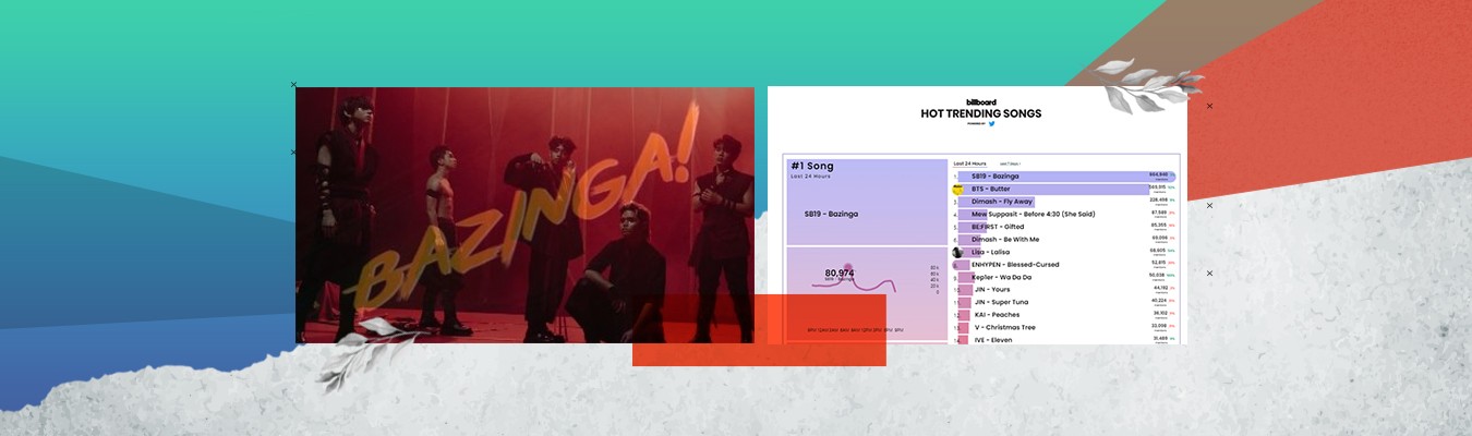 “Who’s the boss now?” SB19 and ATINs once again proved this week who’s the king of Billboard #HotTrendingSongs as ‘Bazinga’ extends its record of topping the chart for sixth week. It has now tied the K-pop boy group BTS’ “Butter” as the chart's longest running #1.