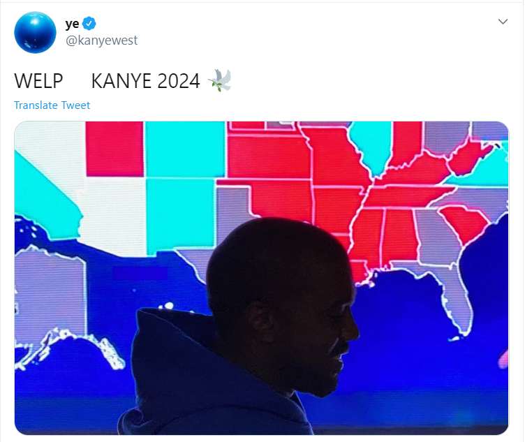 It seems like Kanye West has decided to concede the 2020 presidential election, as he garnered a total of 0.03% vote as to writing. But wait, the rapper may still leave his doors open for 2024, as he said in a now deleted tweet “WELP KANYE 2024”.