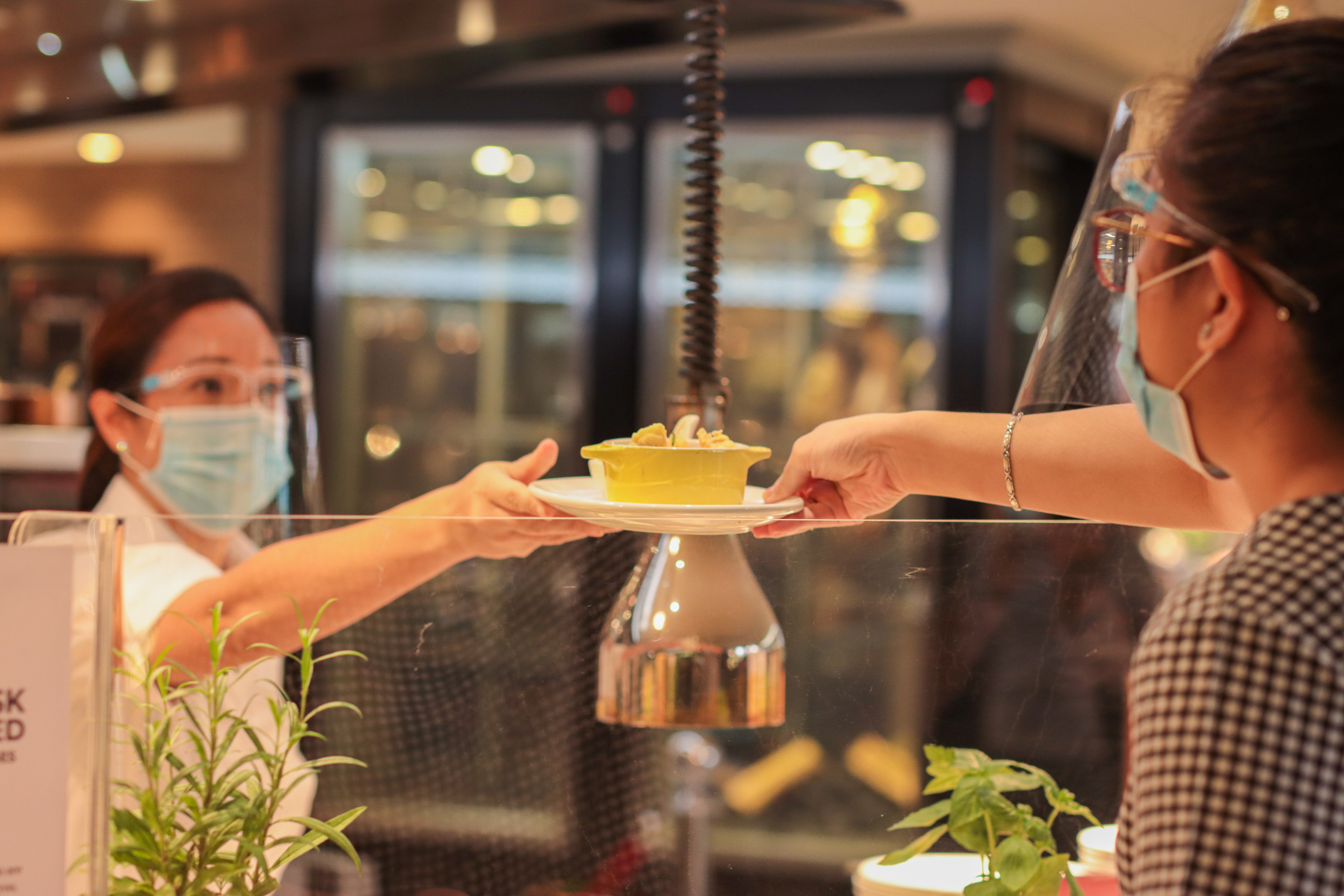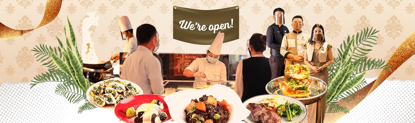 Staff members are equipped with safety apparel while queues are managed with floor signages for demarcation. As they embark on their gastronomic journey, guests may go around the various ateliers to select their favorite specialties following a strict one-way route. To maintain minimal exposure, each plate shall only be in contact with the guest, apart from the chef safely serving the dish from their respective atelier. A one-dish-per-plate policy shall be implemented to avoid cross-contamination. For made-to-order dishes, order numbers shall be provided to the guest for claiming. Further hygiene measures are implemented with an online beverage menu accessible through a QR code on each table while contactless payment solutions via GCash, Alipay, WeChat Pay, and GrabPay are made available. In accordance with government protocols, guests below the age of 21 years old and above 60 years old are not permitted to dine in the restaurant during General Community Quarantine (GCQ).