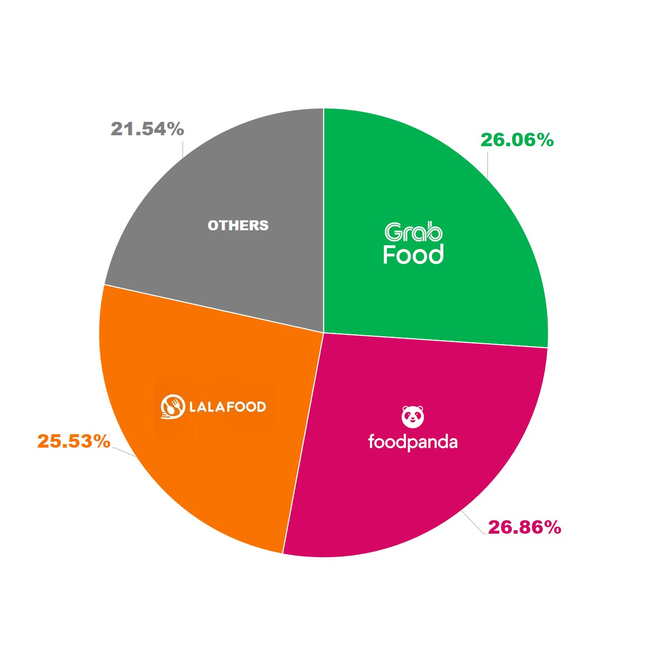 GrabFood and LalaFood were placed on the second and third spots, respectively.