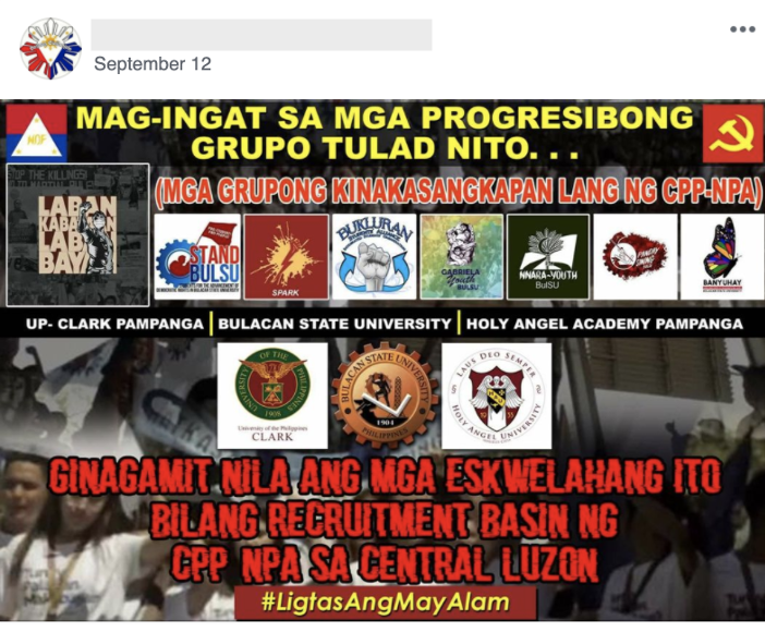 Ang mga nabanggit na paksa ay nakitang ibinabahagi o pinopost gamit ang mga accounts at pages na nag-uugnay sa military at pulisya.