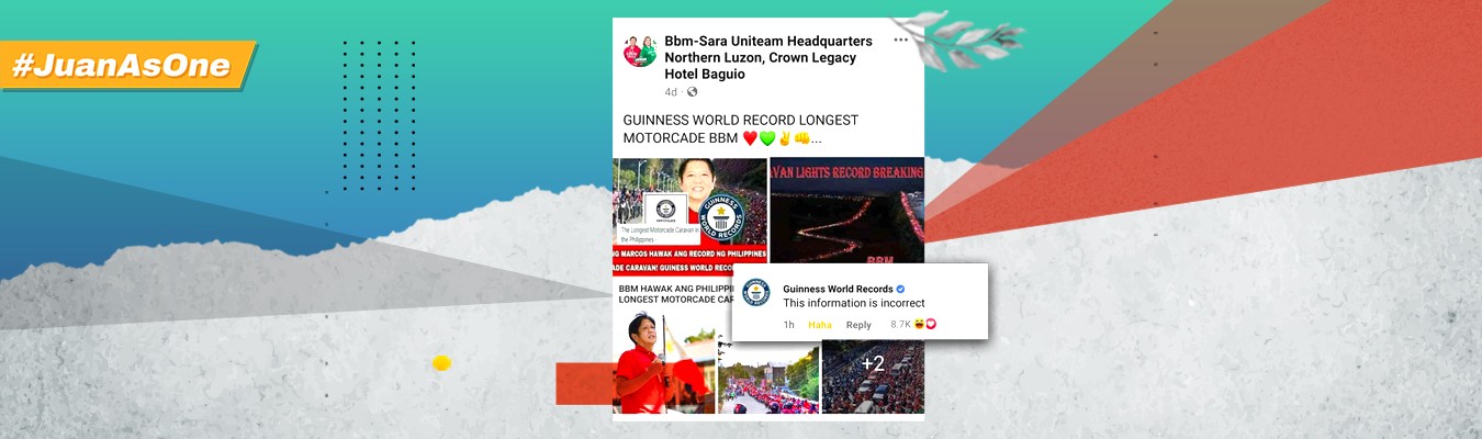 On March 30, 2022, Guinness shook their head and claimed the Uniteam supporters’ gathering in Ilocos Norte as the “world’s longest motorcade” as false.